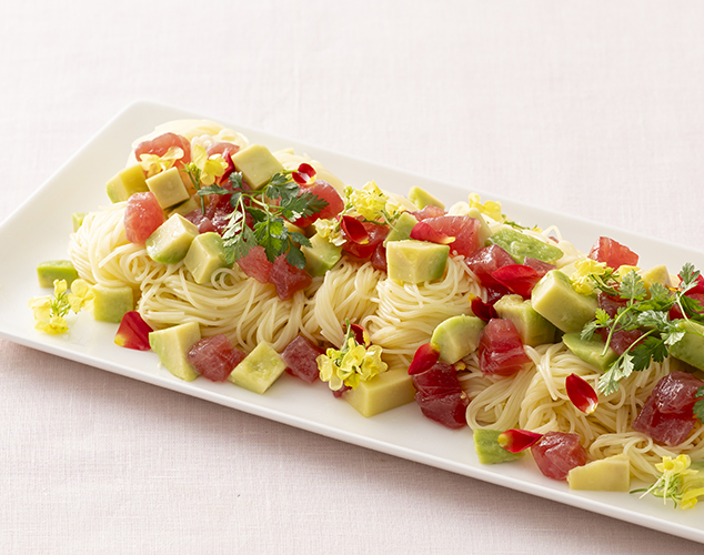 鮪とアボカドの冷製パスタ